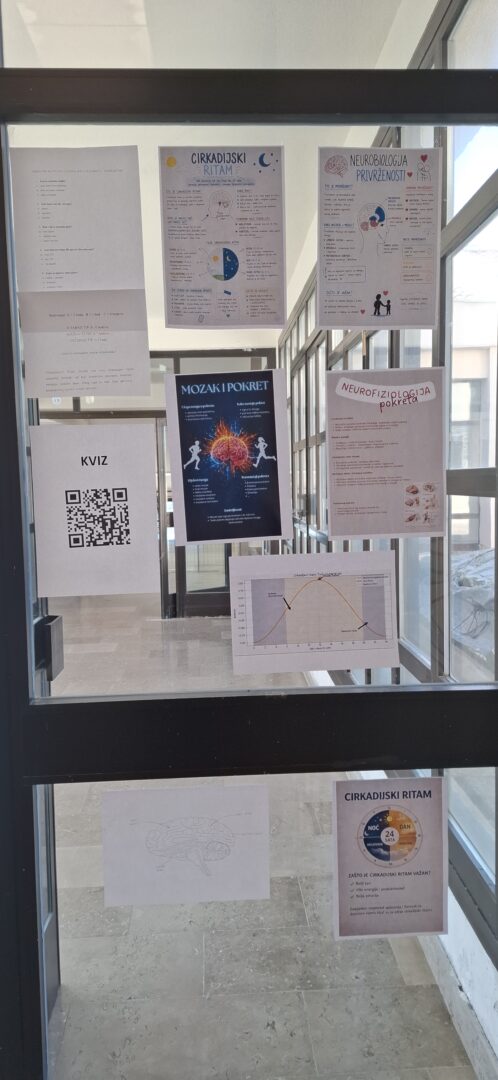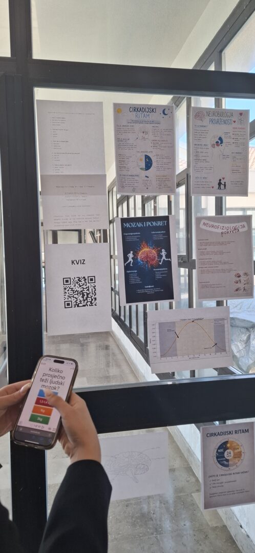 Učenici 3. razreda proučavali su građu i funkciju mozga s posebnim naglaskom na neurofiziološke procese. Kroz kviz i izradu plakata obrađivali su teme cirkadijanih ritmova, hormona i neurotransmitera te njihovu ulogu u regulaciji ponašanja i održavanju homeostaze. Aktivnosti su doprinijele boljem razumijevanju složenih procesa u živčanom sustavu te povezivanju teorijskih znanja s primjerima iz svakodnevnog života.
