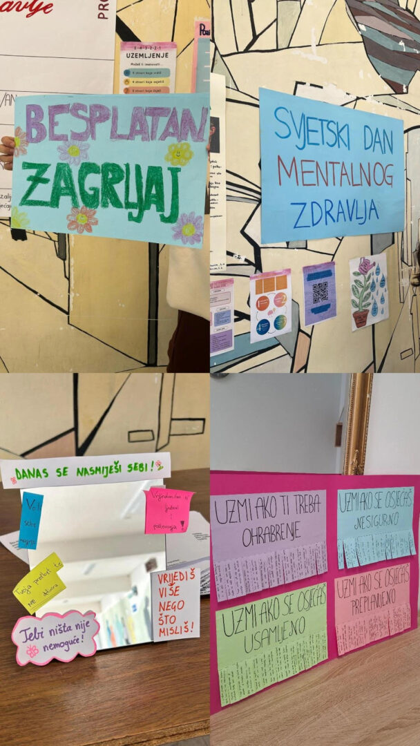 Učenici su ove godine posebnu pažnju posvetili stvaranju edukativnih informativnih plakata kojima su željeli naglasiti važnost destigmatizacije psihičkih teškoća i potaknuti vršnjake da na vrijeme potraže stručnu pomoć. Istaknuli su važnost preventivnih aktivnosti, međusobne podrške i otvorenog razgovora o mentalnom zdravlju. Ponudili su praktične savjete za očuvanje mentalnog zdravlja te kontakte stručnih službi dostupnih učenicima u slučaju potrebe.