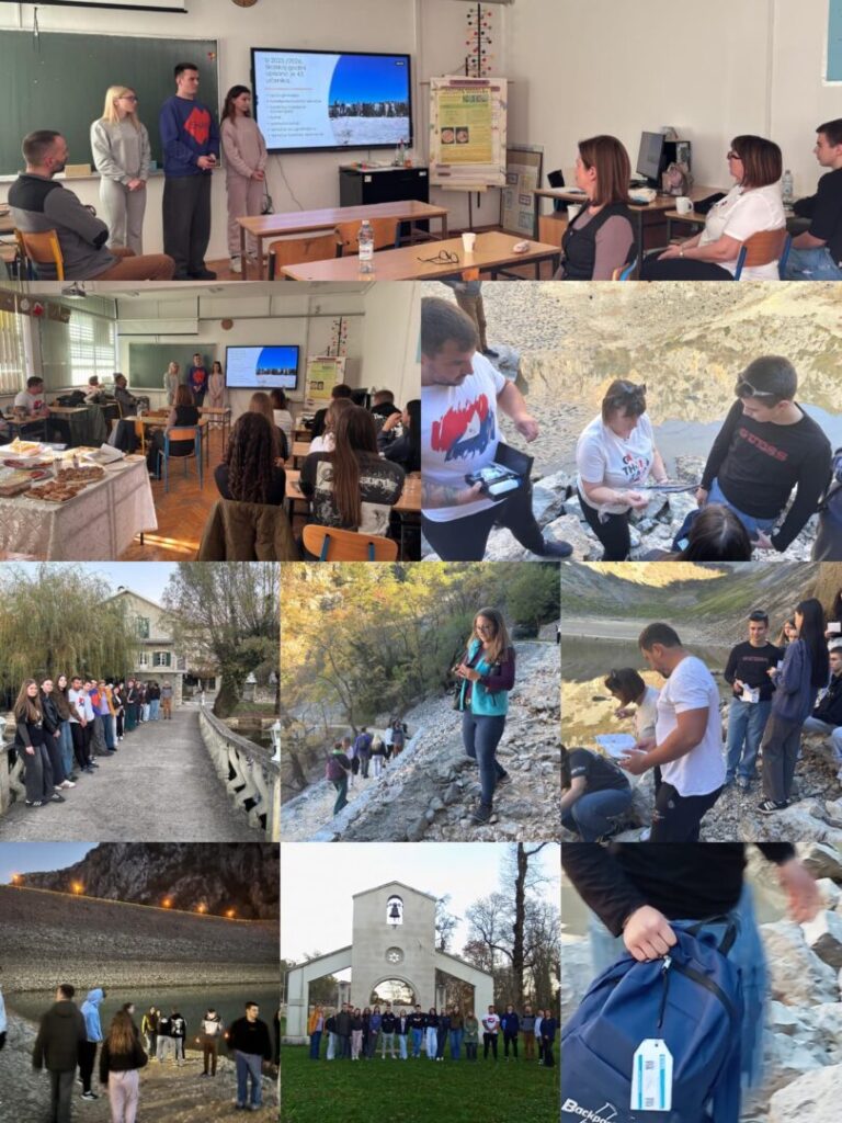 U sklopu projekta KRAS, u našu su školu stigli učenici SŠ Antun Matijašević Karamaneo Vis zajedno s voditeljima projekta iz UNESCO Geoparka Viški arhipelag te izvršna direktorica Geoparka Biokovo – Imotska jezera, Ivana Ćapin. Dolazak je bio prilika za međusobno upoznavanje i uvodno druženje svih sudionika. Nakon toga uslijedila je edukacija o metodama uzorkovanja i osnovnim hidrološkim postupcima. Terenski dio odvijao se na lokacijama Modro jezero, Zeleno jezero, Prološko blato, Opačac i Brana Zmijavci, gdje su učenici 3.c razreda, sudionici projekta izveli prva mjerenja te predstavili posebnosti imotskog krškog krajolika svojim kolegama s Visa. Kroz zajednički rad i istraživanje produbili su razumijevanje prirodnih procesa, ali i izgradili nova poznanstva i suradnju unutar projekta.